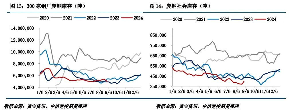 (3)廢鋼庫(kù)存:廢鋼社會(huì)資源偏緊,鋼廠庫(kù)存持續(xù)下降。本周市場(chǎng)情緒回暖,盼漲氛圍濃厚,商家出現(xiàn)捂貨惜售心里,市場(chǎng)有效資源偏緊,貨場(chǎng)收貨難度加大,鋼廠到貨持續(xù)低于日耗,庫(kù)存呈下降態(tài)勢(shì),對(duì)廢鋼價(jià)格形成一定支撐。疊加鋼廠利潤(rùn)有所修復(fù),復(fù)產(chǎn)計(jì)劃增加,廢鋼需求有向好預(yù)期,短期內(nèi)廢鋼價(jià)格具有一定抗跌性。