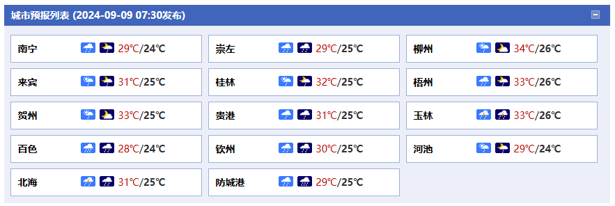 廣西氣象臺(tái)9日05時(shí)發(fā)布預(yù)報(bào):