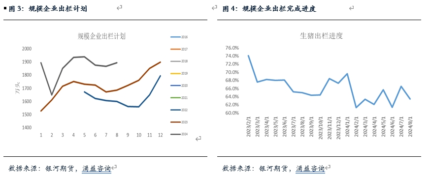 另一方面,對于剔除集團(tuán)企業(yè)的規(guī)模廠而言,月內(nèi)出欄計劃本身是上調(diào)的,參照各機(jī)構(gòu)評估的量來看,整體有一定差異,其中我的農(nóng)產(chǎn)品評估同比增加大約在7.11%左右,涌益口徑評估同比增加14.52%,這個可能是受到樣本點調(diào)整的影響,出欄計劃上規(guī)模場整體上調(diào)空間應(yīng)當(dāng)比較有限,二者均顯示8月生豬出欄環(huán)比增加大約在1.37%-2.53%左右,當(dāng)然這其中包含了較多的集團(tuán)場樣本。由于月內(nèi)從市場表現(xiàn)上看,規(guī)模企業(yè)出欄動力有所增加,尤其在豬價快速上漲后,可以看到不少規(guī)模企業(yè)有開始調(diào)整出欄計劃的表現(xiàn),價格調(diào)整速度加快,從當(dāng)前數(shù)據(jù)來看,規(guī)模企業(yè)出欄完整進(jìn)度表現(xiàn)一般,因此預(yù)計8月期間規(guī)模企業(yè)出欄同比增量大約在6%左右,環(huán)比小幅增加。