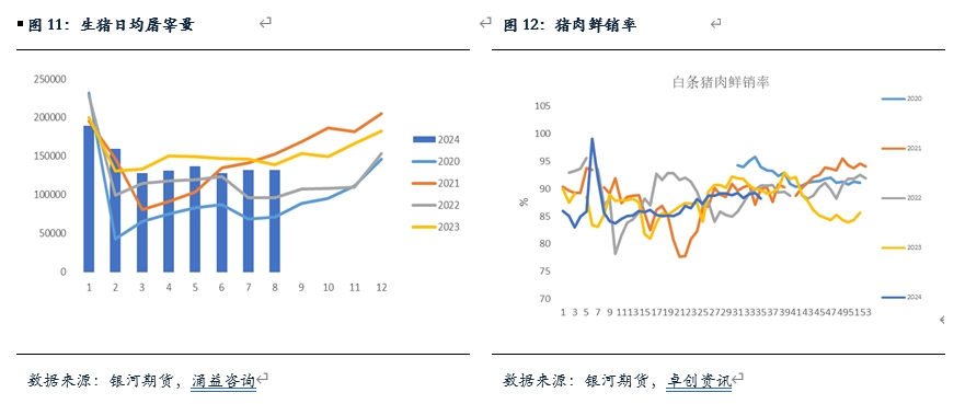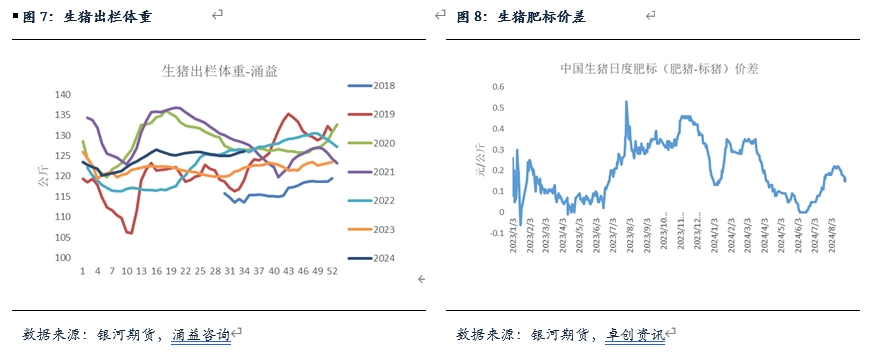 總體來看,我們傾向于8月期間生豬出欄量有所減少,這一方面源于前期仔豬新增供應(yīng)量有所下滑,按照正常的生長周期來看,本月內(nèi)生豬的適重豬源數(shù)量有所增加;另一方面,從各個群體綜合表現(xiàn)來看,雖然二次育肥和規(guī)模場有所增加,但集團(tuán)場和散戶是處于明顯下降的狀態(tài)。二次育肥供應(yīng)量的增加以及整體生豬出欄體重的增加一定程度彌補了總體量的缺失,但總體背景下,8月份實際供應(yīng)仍然處于下降狀態(tài)。不過,進(jìn)入9月以后,成豬供應(yīng)環(huán)比預(yù)計有所增加,并且前期二育消化并不徹底,在此背景下,豬價上方預(yù)計仍有壓力,后續(xù)要重點關(guān)注需求改善情況。