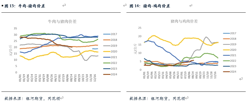 整體來看,月內(nèi)豬肉比價繼續(xù)呈現(xiàn)走弱,截止當(dāng)前,牛肉與豬肉價差下跌至20.3元/斤,豬肉與雞肉價差上升至5.65元/斤。豬肉消費可能會一定程度因為其他肉類價格優(yōu)勢受到?jīng)_擊,后續(xù)還需繼續(xù)關(guān)注。不過9月通常是豬肉消費好轉(zhuǎn)的季節(jié),一方面因為季節(jié)性因素的帶動,另一方面,凍品庫存在持續(xù)下滑后,后續(xù)可能會帶來一定的補庫需求,在此背景下,大方向豬肉需求下跌空間有限。