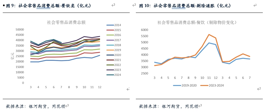 7月市場消費表現(xiàn)稍好于預(yù)期,社零口徑餐飲類消費同比增加大約3%,考慮到物價水平變化,剔除價格指數(shù)后,對比2019年同比增速大約為5.6%,雖然剔除價格變化指數(shù)較6月增速有所放緩,但整體年內(nèi)仍然處于相對高位,反應(yīng)總體消費情況尚可。