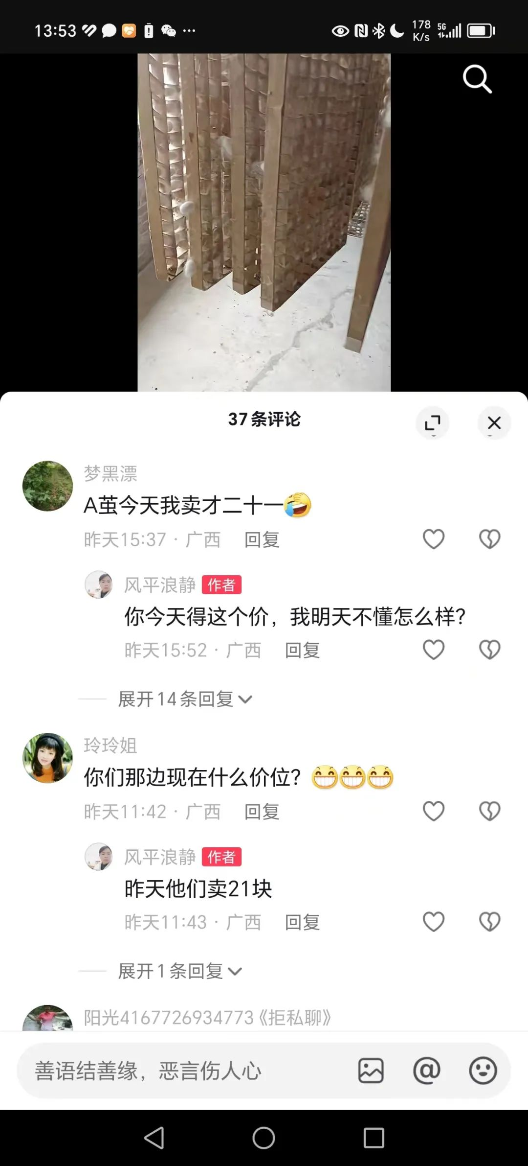 蠶農(nóng)怎么看?選幾則某音平臺(tái)上特別是廣西有些蠶農(nóng)的抖音號(hào)這兩天所發(fā)內(nèi)容的截屏。關(guān)注后期全國(guó)天氣進(jìn)展以及農(nóng)民的積極性程度。