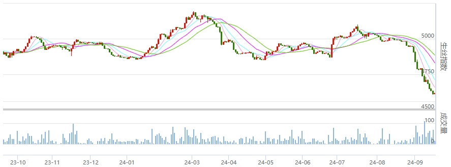 今日(2024年09月18日,周三)中國(guó)繭絲綢交易市場(chǎng)生絲電子指數(shù)上漲0.07%報(bào)收于4614.71點(diǎn)。B絲2022D(商檢4A級(jí)生絲):240925合約上漲0.03萬元報(bào)收于46.68萬元;250325合約上漲0.18萬元報(bào)收于46.05萬元;250925合約上漲0.21萬元報(bào)收于45.93萬元。