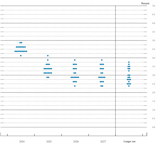 聯(lián)邦公開市場(chǎng)委員會(huì)參與者對(duì)適當(dāng)貨幣政策的評(píng)估:聯(lián)邦基金利率目標(biāo)區(qū)間或目標(biāo)水平的中點(diǎn)