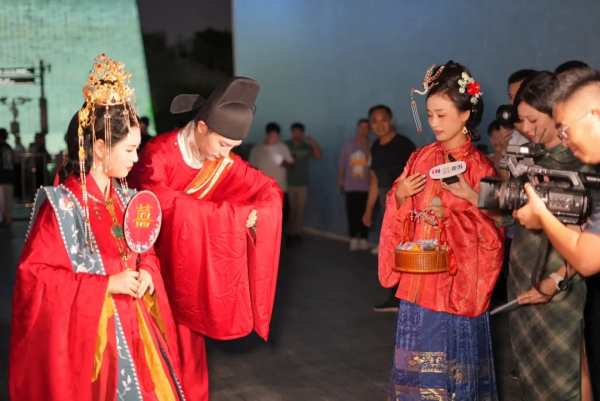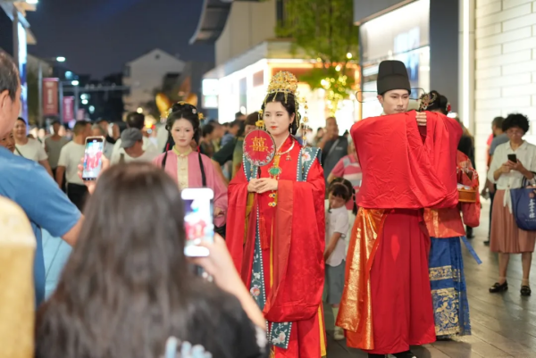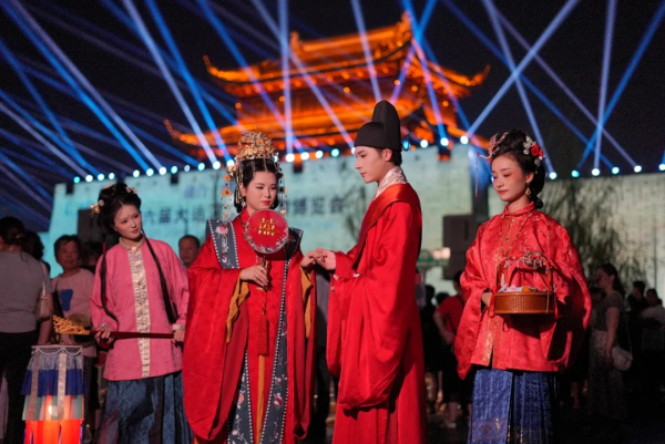 9月12日晚,由文化和旅游部政策法規(guī)司指導(dǎo),中共江蘇省委宣傳部、江蘇省文化和旅游廳、江蘇省人民政府外事辦公室主辦的第六屆大運(yùn)河文化旅游博覽會(huì)啟動(dòng)儀式在蘇州舉辦,蘇州絲綢傳統(tǒng)服飾快閃活動(dòng)現(xiàn)場(chǎng)。