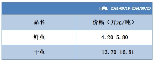 根據(jù)本周蠶繭報價按照指數(shù)方案形成的基準品價格區(qū)間