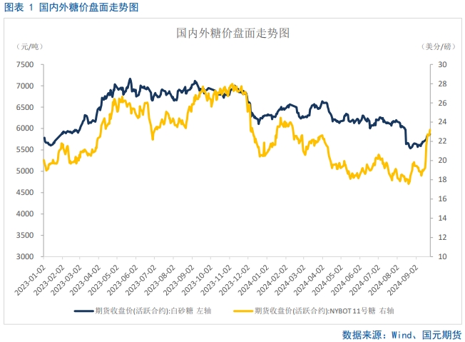 國內(nèi)市場方面,由于超強臺風(fēng)“摩羯”對兩廣與海南地區(qū)甘蔗造成了明顯影響,預(yù)計我國2024/25榨季白糖增產(chǎn)幅度不及預(yù)期,產(chǎn)量或不及1100萬噸。新甜菜糖定價已經(jīng)在盤面反映,悲觀情緒暫歇,后面將由新甘蔗糖定價,但不宜過分樂觀。