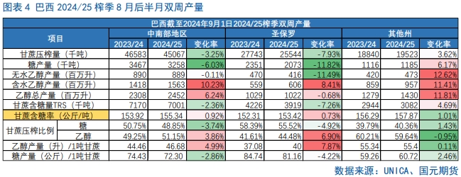 2.1 巴西2024/25榨季8月后半月雙周產(chǎn)糖量同比繼續(xù)下降
