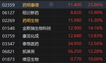 醫(yī)藥外包概念股漲幅居前,藥明康德漲近24%。交銀國際(0.255, 0.01, 6.25%)認(rèn)為,美國生物安全法案未被納入NDAA,意味著生物安全法案立法進(jìn)一步被推遲,年內(nèi)單獨立法的可能性下降,同時S.3558號法案最新版未納入藥明生物(15.98, 2.12, 15.30%),根據(jù)美國立法流程,該行認(rèn)為其他被提及的公司也有最終被除名的可能。考慮到美聯(lián)儲正式啟動降息、行業(yè)訂單邊際改善,預(yù)計頭部CXO的投資情緒將邊際回暖,但進(jìn)一步估值修復(fù)或許需要更多業(yè)績復(fù)蘇的能見度。