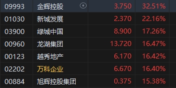 內(nèi)房股集體走強,金輝控股漲超32%。消息面上,中共中央政治局9月26日召開會議,會議強調(diào),要促進(jìn)房地產(chǎn)市場止跌回穩(wěn),對商品房建設(shè)要嚴(yán)控增量、優(yōu)化存量、提高質(zhì)量,加大“白名單”項目貸款投放力度,支持盤活存量閑置土地。要回應(yīng)群眾關(guān)切,調(diào)整住房限購政策,降低存量房貸利率,抓緊完善土地、財稅、金融等政策,推動構(gòu)建房地產(chǎn)發(fā)展新模式。