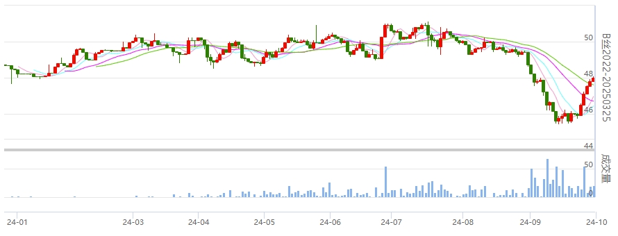 20/22D商檢4A級生絲:今日(周一)是9月份的最后一個(gè)交易日,各遠(yuǎn)近生絲合約價(jià)格繼續(xù)上漲,成交總量一般,主力250325生絲合約繼續(xù)有所增倉。