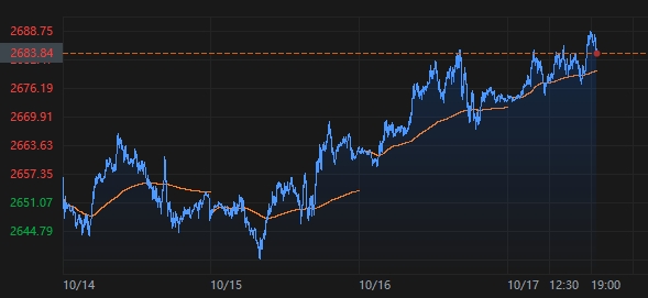 周四(10月17日)紐市盤初,現(xiàn)貨黃金有所走強(qiáng),最高報(bào)每盎司2688.82美元,刷新了9月26日錄得的最高紀(jì)錄。