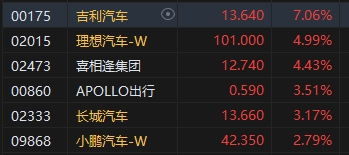 10月22日消息,今日港股三大指數(shù)小幅收漲,截至收盤,恒生指數(shù)(20498.951, 0.00, 0.00%)漲0.1%,報(bào)20498.95點(diǎn),恒生科技指數(shù)(4521.63, 0.00, 0.00%)漲0.66%,國企指數(shù)漲0.31%。盤面上,科網(wǎng)股走勢分化,美團(tuán)漲超2%,快手、小米漲近1%,百度跌近3%,阿里巴巴跌超0.5%;汽車股漲幅居前,吉利汽車(13.64, 0.00, 0.00%)漲超7%;電力股漲勢活躍,華能國際電力股份漲近5%;乳制品股集體走強(qiáng),中國飛鶴(5.9, 0.00, 0.00%)漲超6%。