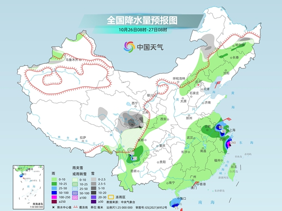 后天,青海南部、川西高原、甘肅西南部、內(nèi)蒙古東部、黑龍江中部等地部分地區(qū)有小到中雪或雨夾雪,其中,青海東南部、甘肅南部、川西高原北部等地部分地區(qū)有大到暴雪。江蘇南部、安徽東南部、上海、浙江北部和東部、海南島等地部分地區(qū)有大到暴雨,其中,浙江東部等地部分地區(qū)有大暴雨,局地特大暴雨。