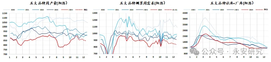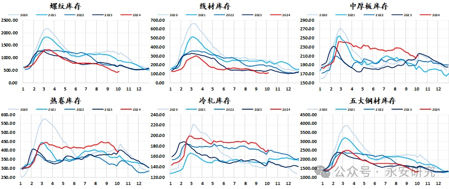 隨著鋼廠利潤修復(fù),加上下游庫存的持續(xù)健康,這也給了未來鋼廠復(fù)產(chǎn)的更多能動性,本輪復(fù)產(chǎn)預(yù)期并非下游需求的持續(xù)性好轉(zhuǎn)作為復(fù)產(chǎn)支撐,更多的是因為利潤好轉(zhuǎn)背景下,加上下游庫存健康,給了加工環(huán)節(jié)復(fù)產(chǎn)的底氣,短期看鋼廠檢修計劃逐步減少,預(yù)計10月底之前鐵水能持續(xù)修復(fù)。我們按照對等口徑的鐵水與廢鋼到貨去平推五大材供應(yīng),在需求維持環(huán)比水平的情況下,按照五大材的復(fù)產(chǎn)速度,11月初庫存將再次轉(zhuǎn)為累庫格局。