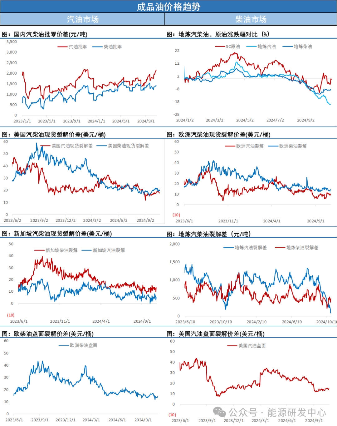 中東地緣因素仍是市場擔(dān)心的一個風(fēng)險點,伊朗宣稱將和沙特聯(lián)合軍事演習(xí)也讓市場關(guān)注局勢進(jìn)展,以色列遲遲未對伊朗導(dǎo)彈襲擊做出回應(yīng)也在考驗市場耐心。除此之外投資者也在謹(jǐn)慎觀察宏觀層面相關(guān)經(jīng)濟(jì)數(shù)據(jù)及政策預(yù)期的變化,市場風(fēng)險偏好有回升但同時又不穩(wěn)定的階段,所以油價短期內(nèi)的波動隨機(jī)性較強(qiáng)。月差穩(wěn)中趨弱,成品油裂解差也走勢溫和,油市仍處在一個缺少驅(qū)動的震蕩階段,建議保持耐心等待確定性機(jī)會,謹(jǐn)慎參與。