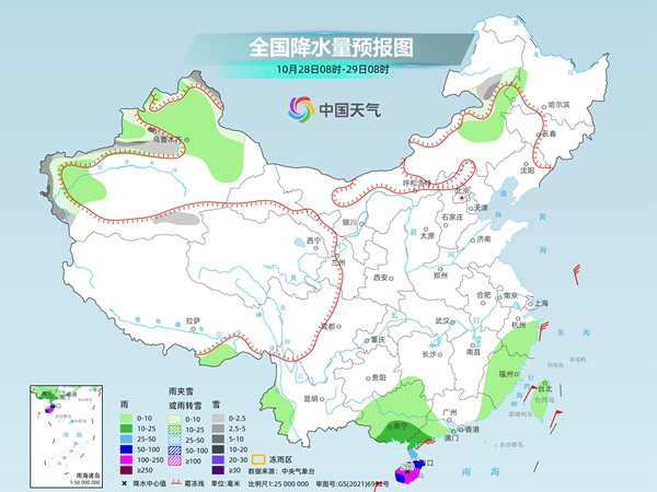 今起三天,海南仍有強風(fēng)雨天氣,當?shù)匦杓訌姺婪?,警惕山體滑坡、泥石流等次生災(zāi)害。10月30日至31日,西北東部、華北西部一帶將有大范圍雨雪天氣,需保持關(guān)注。
