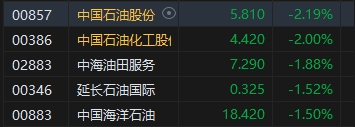 國際油價下挫,石油股集體走弱,中石油、中石化跌約2%。消息面上,盡管近期中東局勢緊張,但以色列最新對伊朗的報復性打擊繞過了石油和核設施,導致國際原油市場的風險溢價迅速消散。且讓市場感到擔憂的是,短線油價下跌速率較大。本周僅兩個交易日,WTI及布倫特原油期貨主連均累跌超6%,交易層面的破位風險驟增