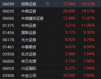 中資券商股午后大幅走強,招商證券漲超18%,中信證券(26.8, 3.40, 14.53%)漲近14%。近日,股權關系密切的中信建投和中信證券傳出高管互換消息,中信建投高管鄒迎光重返中信證券出任總經(jīng)理一職,中信建投總經(jīng)理則由中信證券金劍華出任。近幾年中信證券和中信建投證券(12.48, 1.28, 11.41%)多次傳出合并傳聞,但均落空。此次的人事互換,再次引發(fā)市場關注,市場預期再度升溫。