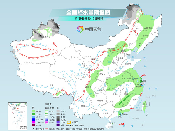 明天,新疆北部、內(nèi)蒙古東北部、黑龍江西北部等地部分地區(qū)有小到中雪或雨夾雪,其中,新疆阿勒泰、塔城、伊犁河谷及內(nèi)蒙古東北部、黑龍江西北部等地部分地區(qū)有大雪,局地暴雪。內(nèi)蒙古南部、黑龍江中西部、吉林中部、遼寧中部、河北北部、山西北部、陜西北部、甘肅南部、四川盆地西部、湖北中西部、河南南部、安徽北部、江蘇、上海、浙江、江西南部、福建北部和西部、廣東南部、臺(tái)灣島東部和北部等地部分地區(qū)有小到中雨,其中,浙江東北部局地有大雨。
