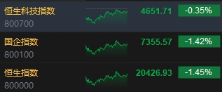 11月11日消息,今日港股三大指數(shù)探底回升,恒生科指一度翻紅,截至收盤,恒生指數(shù)(20426.93, 0.00, 0.00%)跌1.45%,報20426.93點,恒生科技指數(shù)(4651.71, 0.00, 0.00%)跌0.35%,國企指數(shù)跌1.42%。盤面上,科網(wǎng)股漲跌不一,小米漲超3%,網(wǎng)易漲近1%,美團跌超3%,京東跌超2%,騰訊、百度跌近2%,內(nèi)房股跌幅居前,融創(chuàng)中國(2.96, 0.00, 0.00%)跌超9%;中資券商股普遍下挫,興證國際(0.255, 0.00, 0.00%)跌超7%;半導體概念股逆勢上漲,華虹半導體(24.55, 0.00, 0.00%)漲超7%;加密貨幣概念股活躍,OSL集團(7.55, 0.00, 0.00%)漲近9%;黃金、保險、啤酒、煤炭等板塊紛紛走低。