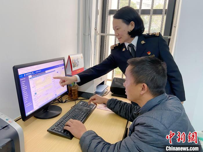 圖為海關(guān)關(guān)員指導(dǎo)企業(yè)自助打印中國—東盟自貿(mào)區(qū)原產(chǎn)地證書