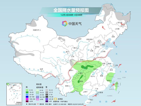 今天(12月3日),冷空氣南下影響江南等地。6日至8日,中東部地區(qū)還將有一次較強冷空氣過程,需注意防范。降水方面,未來三天,東北部分地區(qū)仍然降雪頻繁,同時南方降雨發(fā)展增多。