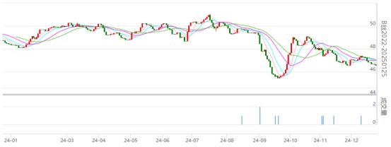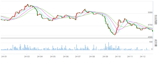 今日(2024年12月24日,周二)中國繭絲綢交易市場生絲電子指數(shù)下跌0.69%收于4632.31點。B絲2022D(商檢4A級生絲):250125合約下跌0.09萬元報收于46.56萬元;250325合約下跌0.06萬元報收于46.47萬元;250925合約上漲0.03萬元報收于46.05萬元。