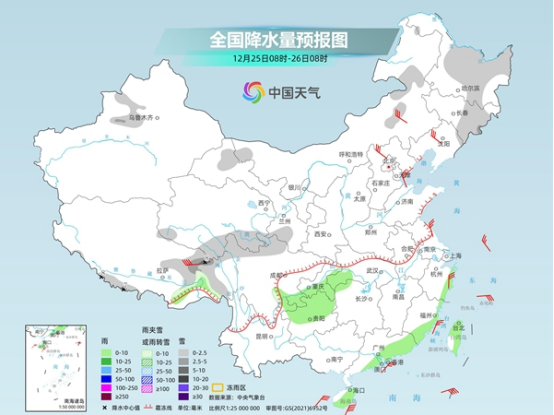 今起三天(12月25日至27日),一股冷空氣將影響中東部大部地區(qū),內(nèi)蒙古東部及東北等地氣溫累計(jì)降幅可達(dá)10℃,公眾需關(guān)注氣溫變化,及時(shí)增減衣物,謹(jǐn)防感冒。新疆北部、西藏等地今天仍有降雪,當(dāng)?shù)匦杈璧缆方Y(jié)冰和積雪對交通的不利影響。此外,臺(tái)風(fēng)“帕布”今天繼續(xù)西行,華南沿海仍需防風(fēng)。