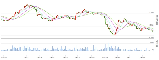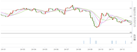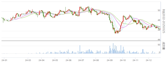 今日(2024年12月26日,周四)中國(guó)繭絲綢交易市場(chǎng)生絲電子指數(shù)微跌0.06%收于4628.53點(diǎn)。B絲2022D(商檢4A級(jí)生絲):250125合約下跌0.06萬(wàn)元報(bào)收于46.50萬(wàn)元;250325合約上漲0.03萬(wàn)元報(bào)收于46.47萬(wàn)元;250925合約下跌0.09萬(wàn)元報(bào)收于45.96萬(wàn)元。