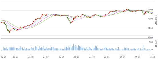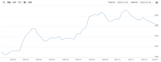 上圖為反映國內(nèi)整體商品價(jià)格的文華商品指數(shù)2024年的走勢(shì)情況。