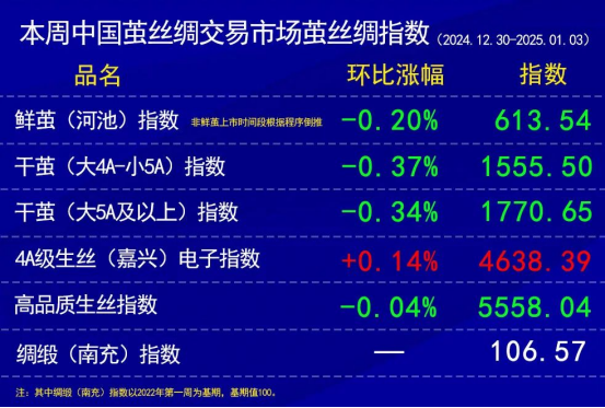 本周繭絲綢各現(xiàn)貨指數(shù)多略收綠。接近年底,產(chǎn)業(yè)鏈企業(yè)以回籠資金作為核心要?jiǎng)?wù)。