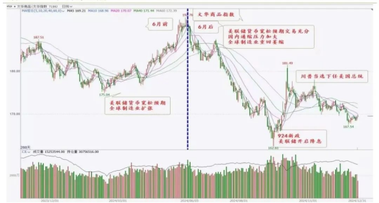 通過對(duì)該走勢(shì)圖的觀察可以發(fā)現(xiàn),尤其是進(jìn)入2024年下半年之后,繭絲商品的走勢(shì)與文華商品指數(shù)的走勢(shì)呈現(xiàn)出高度的趨同性。