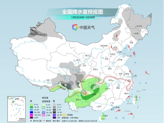 后天,內(nèi)蒙古西部、東北地區(qū)東部、山東半島東北部、新疆南疆北部和北疆大部、西藏東南部、甘肅河西大部、川西高原東部、四川南部、湖北西南部、湖南西部、重慶東南部、貴州西部和東部、云南東北部等地部分地區(qū)有小到中雪或雨夾雪,其中貴州東部局地大雪。貴州西部部分地區(qū)有凍雨。西藏東南部、四川東部、重慶中南部、湖南中西部、貴州、云南東部、廣西北部、海南島中東部、臺(tái)灣島大部等地部分地區(qū)有小雨,其中,臺(tái)灣島東部部分地區(qū)有中雨。
