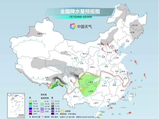 今后三天(1月7日至9日),冷空氣將給中東部大部和西南地區(qū)帶來(lái)明顯降溫,多地氣溫將創(chuàng)立冬后新低。同時(shí),南方降水將逐漸向東擴(kuò)展增多,并波及江南西部等地,四川、貴州、重慶、湖北、湖南等地將經(jīng)歷雨雪轉(zhuǎn)換,局地需警惕凍雨。