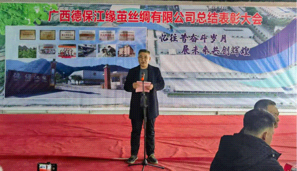 憶往昔奮斗歲月,展未來共創(chuàng)輝煌。1 月 19 日,廣西德保江緣繭絲綢有限公司總結表彰大會舉行,公司董事長周時慶發(fā)表講話。公司對過去一年中表現(xiàn)突出的團隊和個人進行了表彰,以激勵全體員工在新的一年里繼續(xù)拼搏奮進。