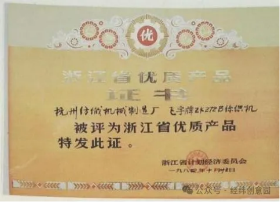1984年,飛宇牌ZK272絲織機被評為浙江省優(yōu)質(zhì)產(chǎn)品
