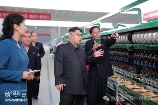 2017年4月,朝鮮領(lǐng)導(dǎo)人金正恩視察平壤絲綢廠的自動繅絲機生產(chǎn)線