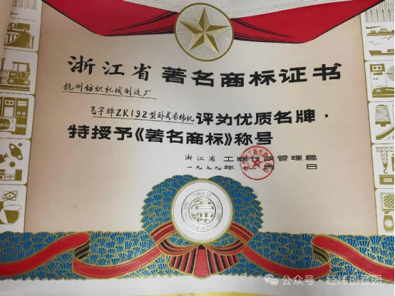 2001年成為浙江省名牌,同年杭紡機被評為浙江省省級企業(yè)技術(shù)中心。