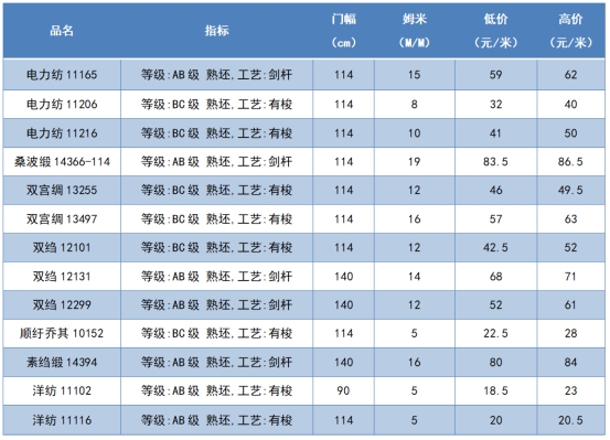 本周綢緞指數(shù)協(xié)作單位成交價(jià)格區(qū)間