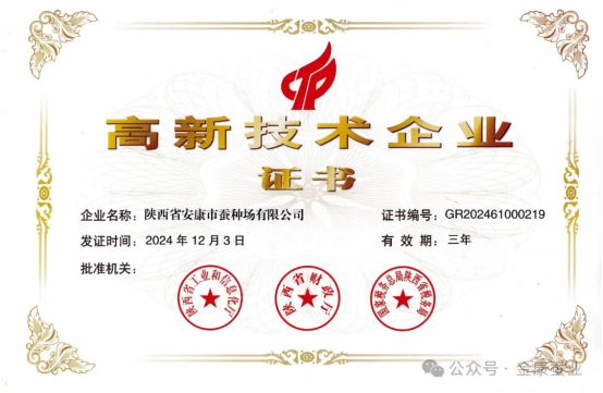 近日,安康市蠶種場有限公司被陜西省工業(yè)和信息化廳、陜西省財政廳、國家稅務(wù)總局陜西省稅務(wù)局認(rèn)定為高新技術(shù)企業(yè)。
