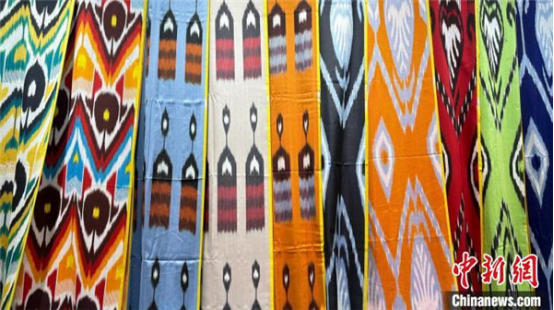 艾德萊斯綢是維吾爾族婦女最喜愛的服裝面料之一,被譽(yù)為“布谷鳥翅膀的花”,寓意能給人們帶來春天的氣息。它采用傳統(tǒng)扎經(jīng)染色工藝,所有制作工序均由手工完成,具有極高的藝術(shù)價(jià)值。2008年,艾德萊斯綢織染技藝被列入第二批國家級(jí)非物質(zhì)文化遺產(chǎn)名錄。