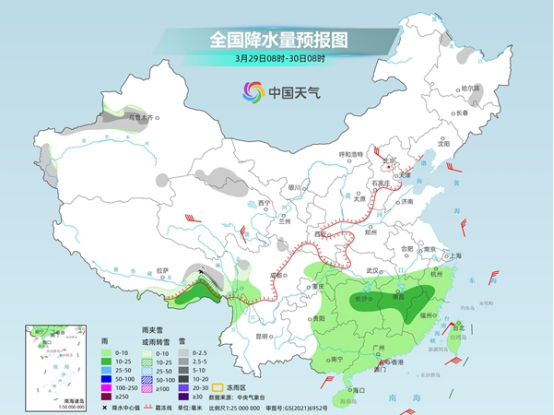 今天起,南方降雨范圍將快速擴(kuò)大并開(kāi)啟多陰雨模式,今天江南、華南等地伴隨降雨還將有強(qiáng)對(duì)流天氣出現(xiàn)。此外,今明兩天東北、華北等地有降雪,公眾請(qǐng)注意防滑。