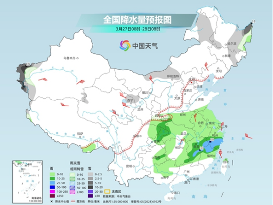 今天(3月27日)至30日,寒潮將繼續(xù)影響我國(guó)。今天起,中東部開(kāi)啟氣溫大跳水,其中南方多地降溫前后冷暖差異巨大,像是杭州、武漢,昨天最高氣溫高達(dá)34℃,今天起氣溫就將開(kāi)始“滑坡“,周末前后或再次感受冬日寒意,公眾需及時(shí)增衣保暖。此外,今天至30日南方將持續(xù)有大范圍陰雨,華北、東北部分地區(qū)今明天有降雪,公眾請(qǐng)注意防滑。