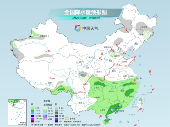 今明兩天(3月28日至29日),寒潮仍會(huì)繼續(xù)影響我國(guó)。到本周末,貴州到江南多地最高氣溫僅有個(gè)位數(shù),并且南方多地伴隨降溫還有陰雨,體感溫度會(huì)更低,濕冷感十足,提醒公眾及時(shí)添衣,注意防雨除濕。