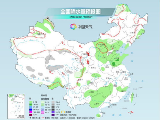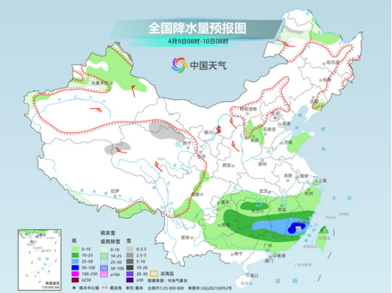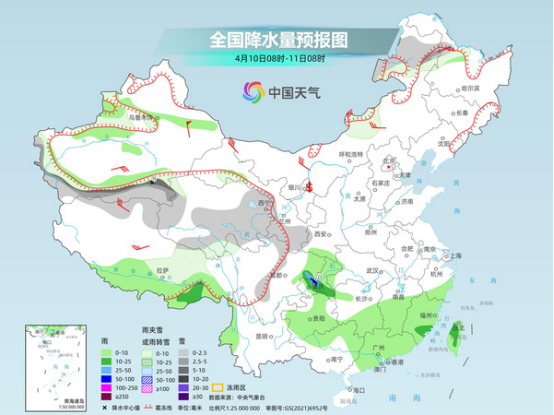 今天白天,南方陰雨整體較弱,以穩(wěn)定性降雨為主,華北、黃淮有弱降水。中央氣象臺預(yù)計,今天,吉林東部、新疆北疆北部、西藏中部、青海南部和西部、甘肅河西、河北北部、川西高原北部等地部分地區(qū)有小雪或雨夾雪,其中,新疆北疆北部等地部分地區(qū)有中到大雪(5~8毫米)。內(nèi)蒙古中西部、遼寧西部、西藏東南部、華北大部、黃淮東部、江南西部、西南地區(qū)東南部、華南西部、臺灣島大部等地部分地區(qū)有小雨,其中,山東中南部部分地區(qū)有中雨。