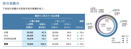 兩大巨頭之外,中國本土企業(yè)安踏2024年的業(yè)績表現(xiàn)尤為亮眼。