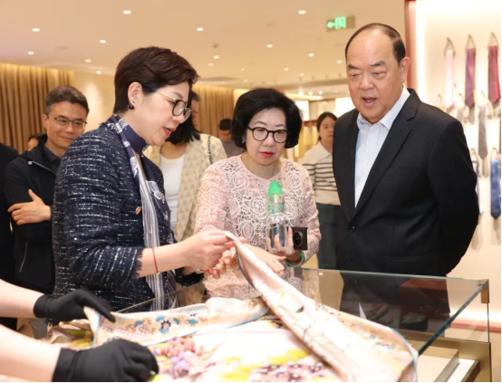 4月21日上午,澳門特別行政區(qū)第五任行政長官賀一誠一行參訪萬事利科創(chuàng)中心,實地感受絲綢歷史經(jīng)典產(chǎn)業(yè)在新質(zhì)生產(chǎn)力賦能下的高質(zhì)量發(fā)展成果。浙江省委統(tǒng)戰(zhàn)部常務(wù)副部長徐旭等省市區(qū)相關(guān)領(lǐng)導(dǎo)陪同調(diào)研。