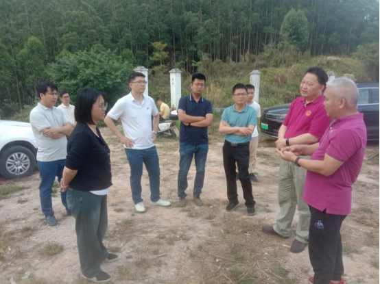 劉吉平教授(右二)在博白縣菱角鎮(zhèn)山林地現(xiàn)場(chǎng)考察調(diào)研
